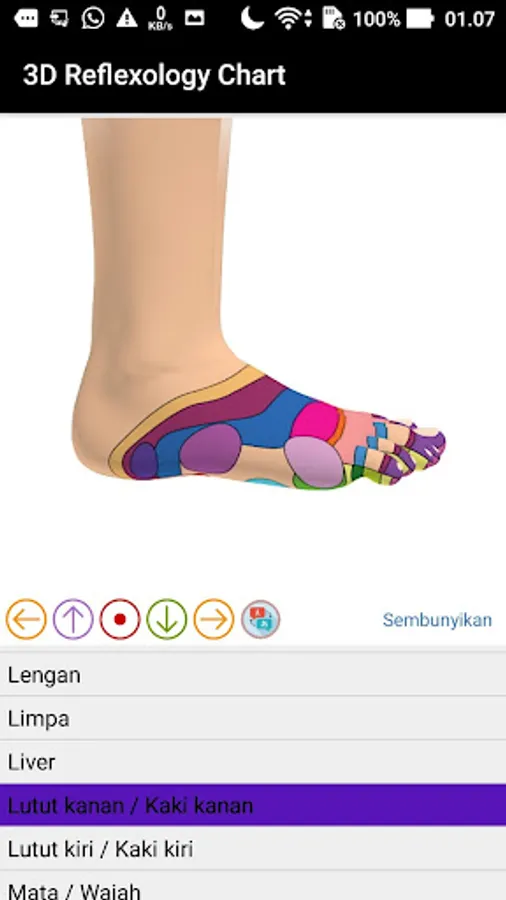 3D Reflexology Chart is fun in a unique and very easy way. You can choose the point of reflection directly on the cross section of the image or through the menu provided.