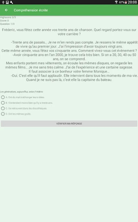 With a hundred quiz in Comprehension written, oral and written expression entirely written, you will enjoy :-)