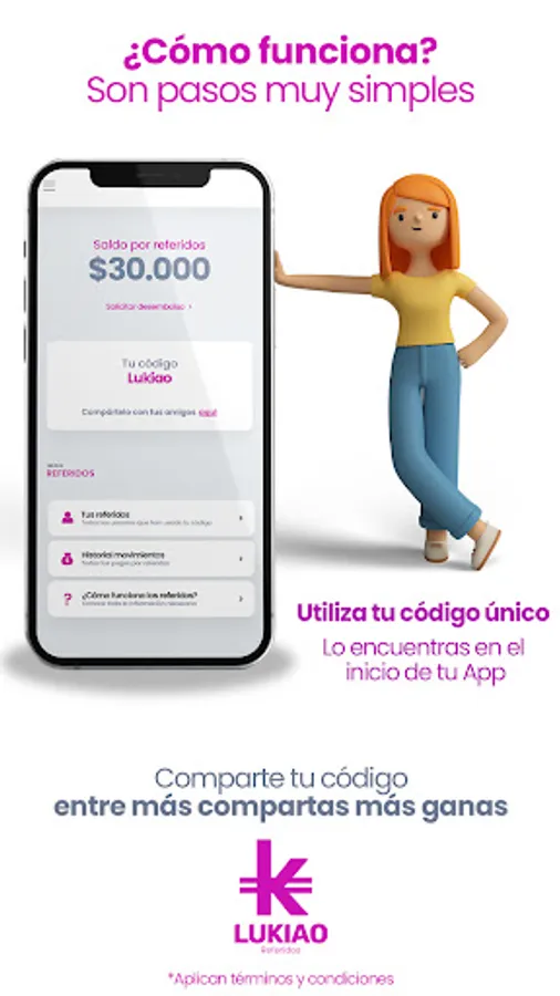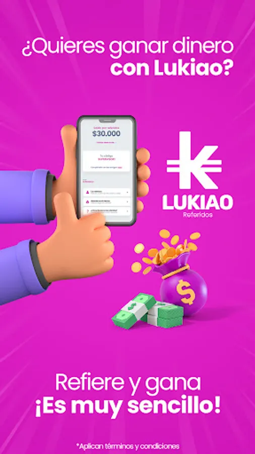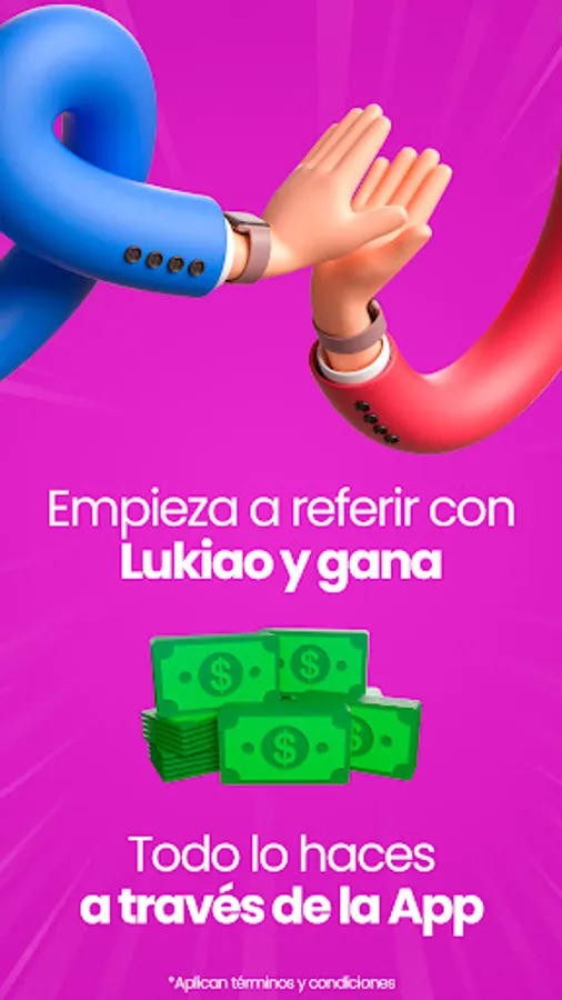 With Lukiao Referidos you can earn by referring our personal credit app. All you have to do is log in, register and start sharing your referral code with your friends. it's that simple!
