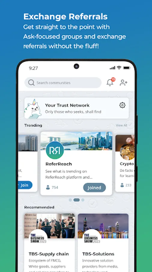 Say hello to ReferReach – the revolutionary app that engineers serendipity for scaling businesses. Browse industries and interests to build your group or join existing groups to connect with potential leads and partners.