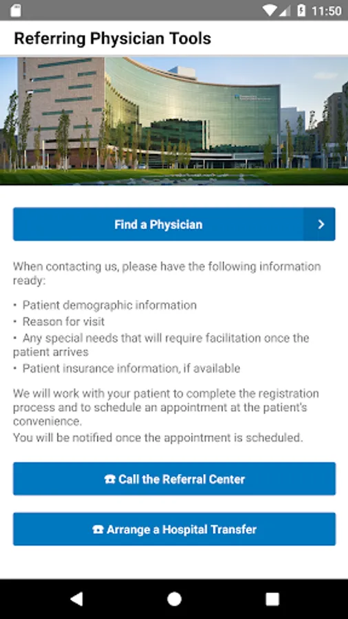 The Cleveland Clinic Referring Physician app provides physicians with tools to make the referral process easier than ever. This new version includes updated physician listing that allows physicians to search by any important dimension – name, specialty, location, and more. It also provides quick-dial functionality to contact the Cleveland Clinic Referral Center or to arrange for a hospital transfer. Please note that a valid NPI is needed to log into this app.