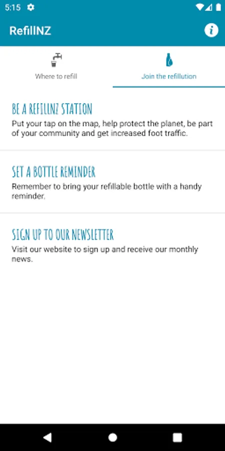 • Use this app to refill your reusable water bottle for free at nearby water fountains as well as participating RefillNZ cafes, bars, restaurants, libraries, pools, leisure centres, dentists and more.