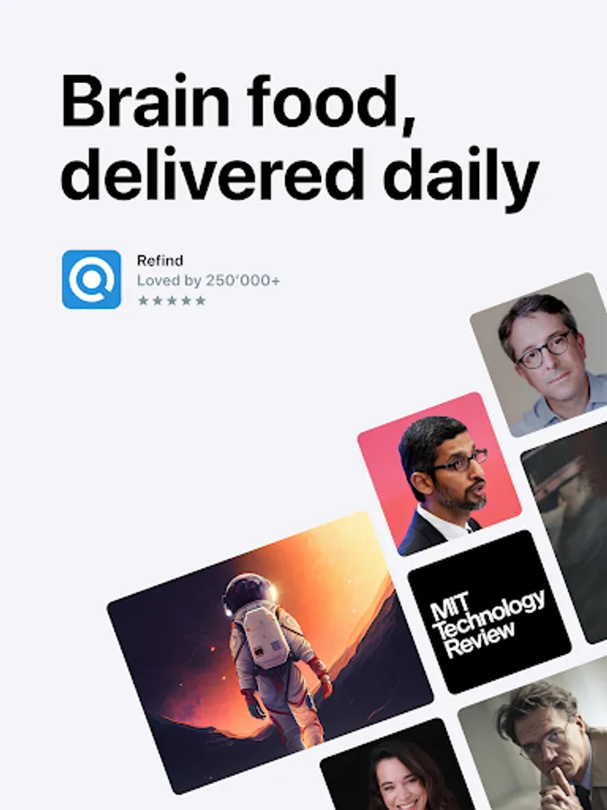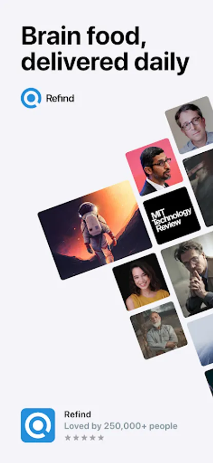Refind is built for voracious readers by voracious readers. Over 200,000 life-long learners start their day with Refind – to learn something new, to get inspired, to move forward. We continuously improve Refind based on feedback from our users.