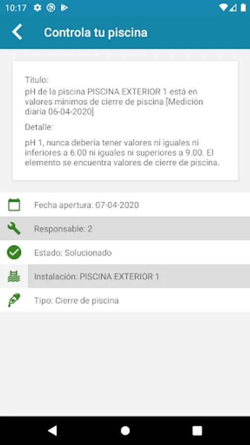With control your pool you can instantly enter the results of the daily measurements of your pools. Easily complies with "RD 742/2013"