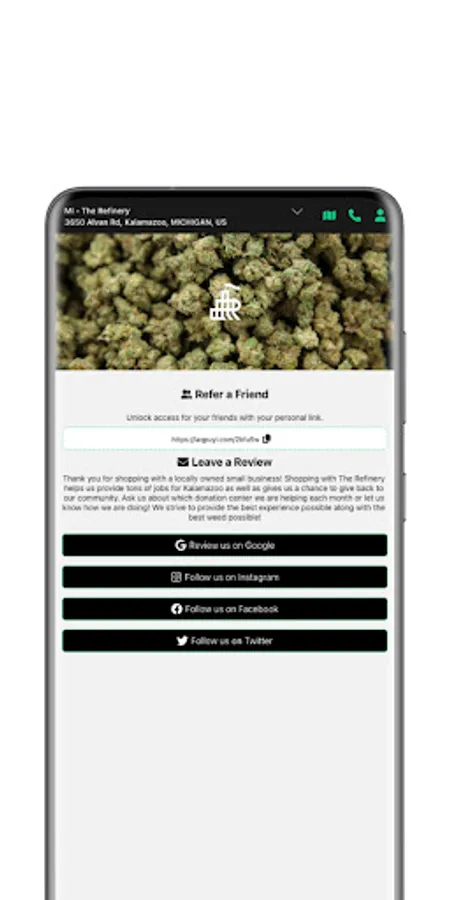 Your Plugs Favorite App. Quickest and easiest way for you to meet your Cannabis needs! Welcome to The Refinery App! Order, contact us, visit our website, and even view your reward points through the app. Sick of our texts not coming through? Now you can receive notifications about the store, plus all of our latest and exclusive drops, instantly!