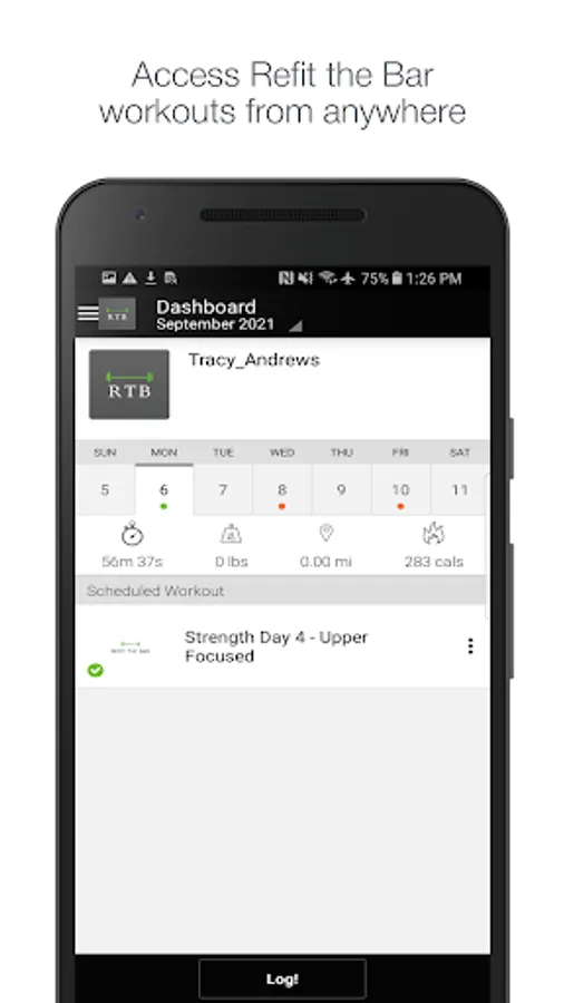 Log your Refit the Bar workouts from anywhere with the Refit the Bar workout logging app! View your logged workouts, see upcoming scheduled workouts, and book appointments inside the app. Track your progress and get the most out of your Refit the Bar workouts!