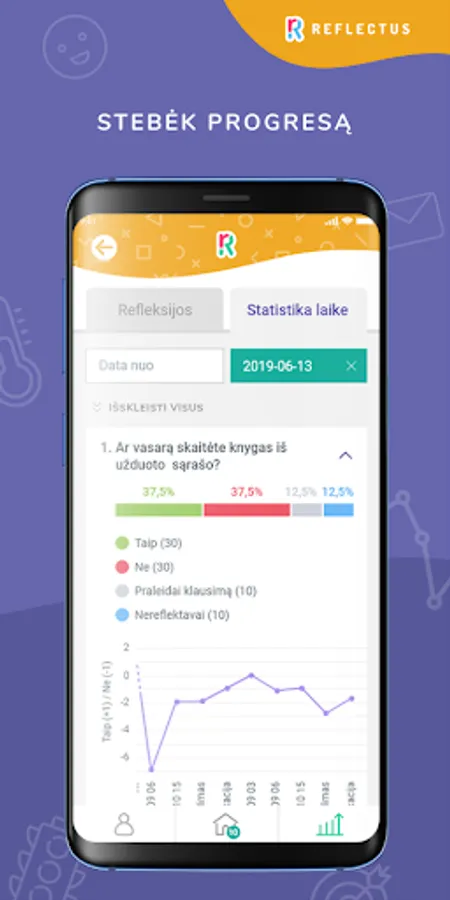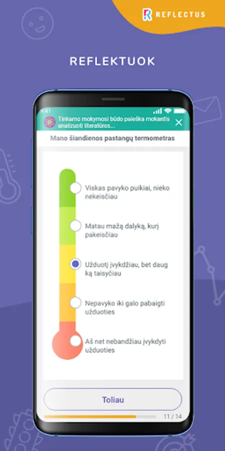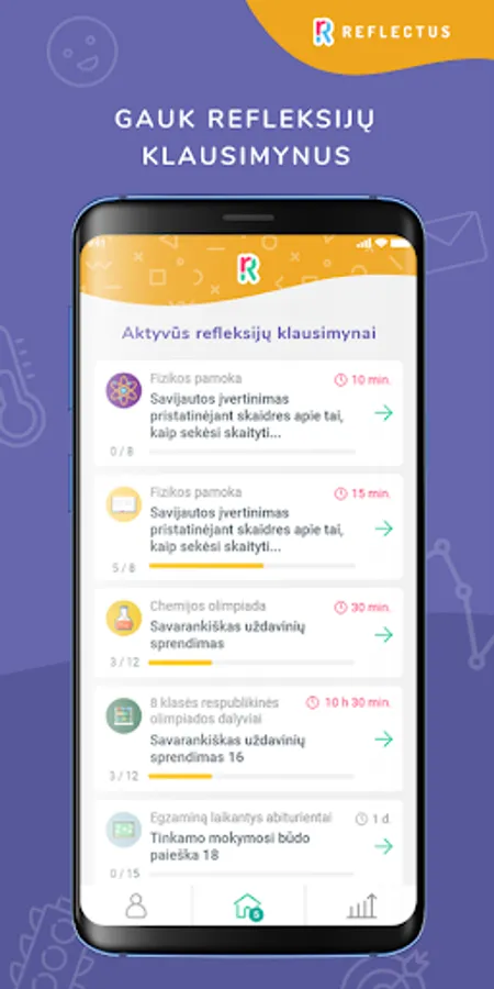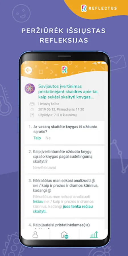 In the app, students complete reflection questionnaires sent by teachers. Using systematic data from personal reflections, students will discover their strengths, and teachers will identify areas for improvement and factors that have the greatest impact on student learning.