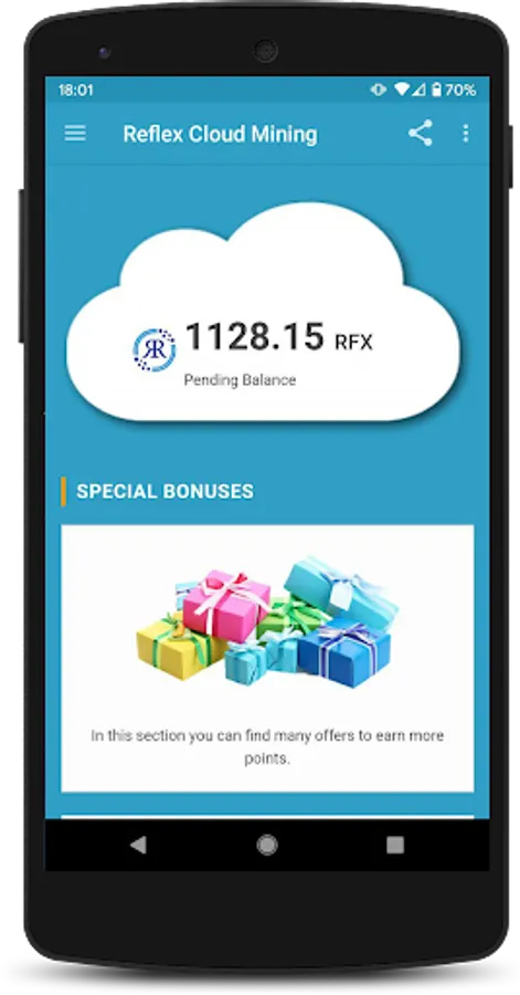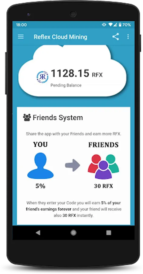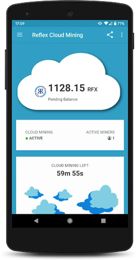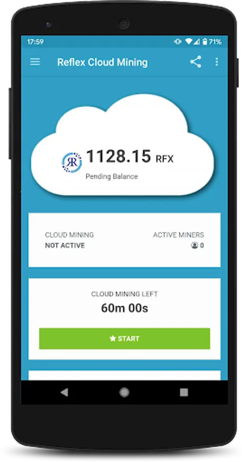 This app allows you to mine Reflex cryptocurrency directly in the cloud from your smartphone without consuming energy.