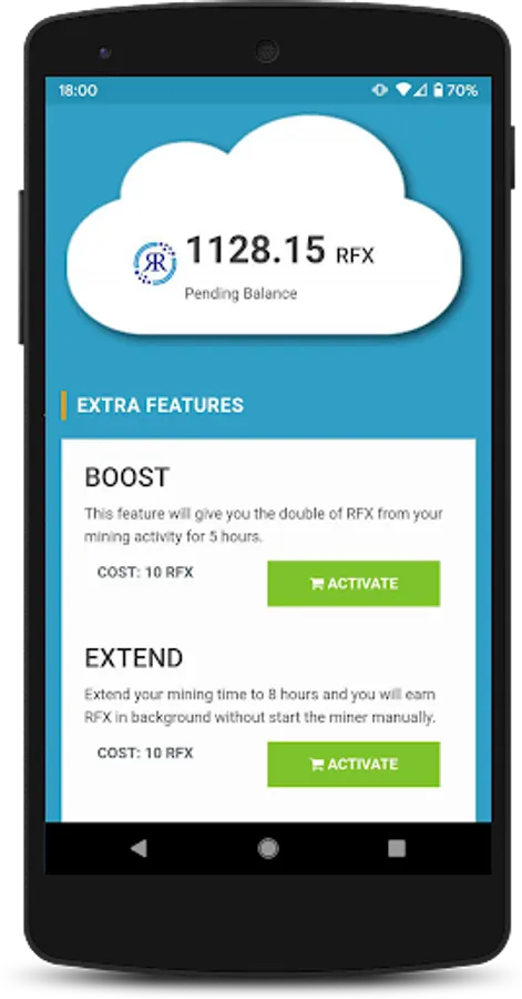 Extend your mining time to earn RFX in background without starting the miner manually.