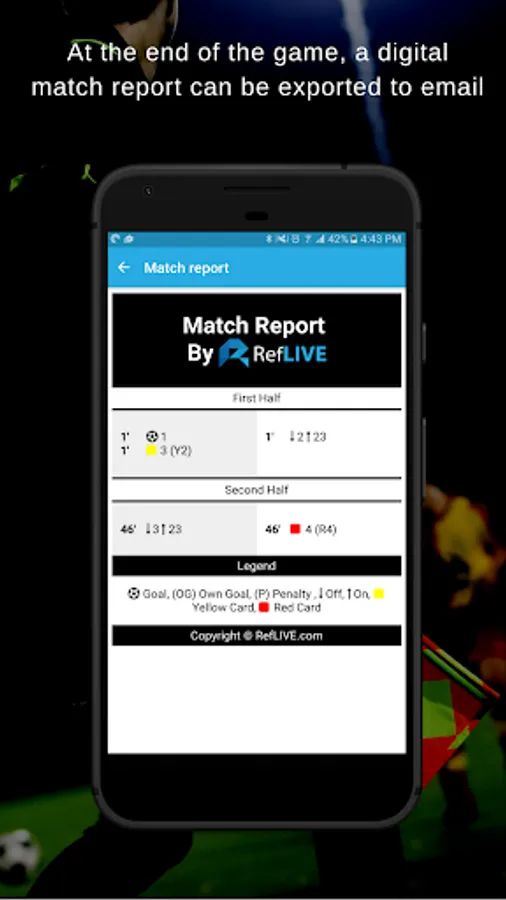 Football (Soccer) Referees can use the RefLIVE smartwatch app to track time, record match details and measure performance. The RefLIVE smartwatch app lets you record: