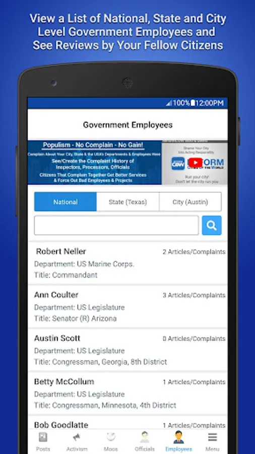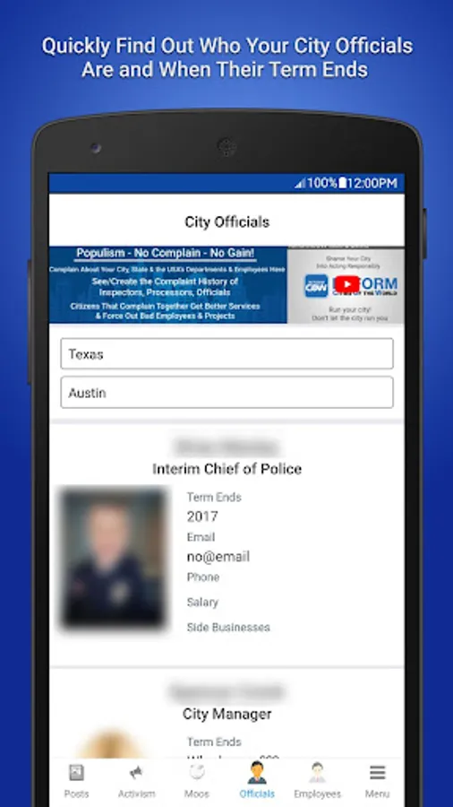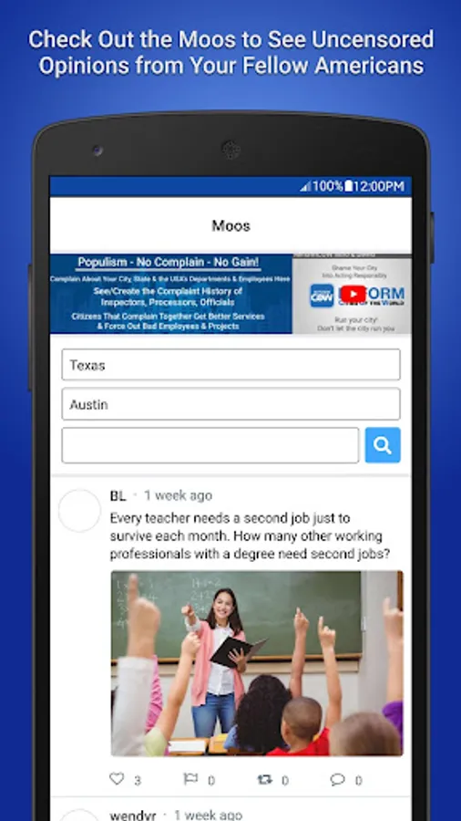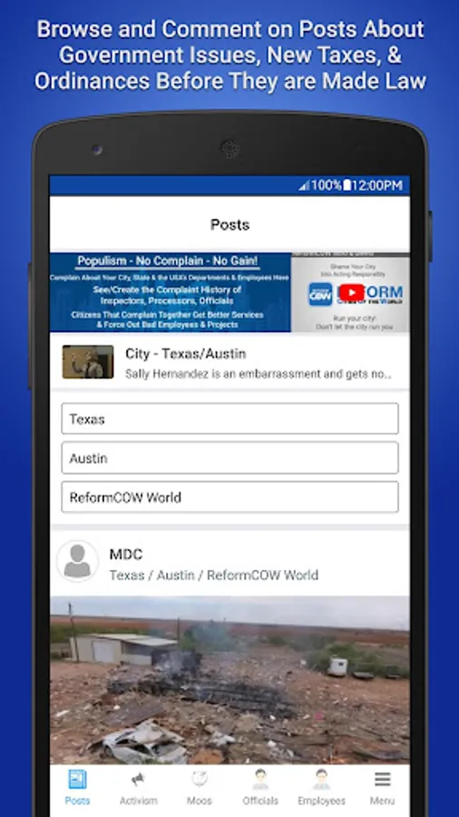 ReformCOW, the complaint app that is about YOUR city! ReformCOW shows the public all of the many customer grievances about city run departments in your community. Citizens supporting citizens complaints so our elected officials take notice and improve customer service. Elected officials take notice when voters are organized and united.