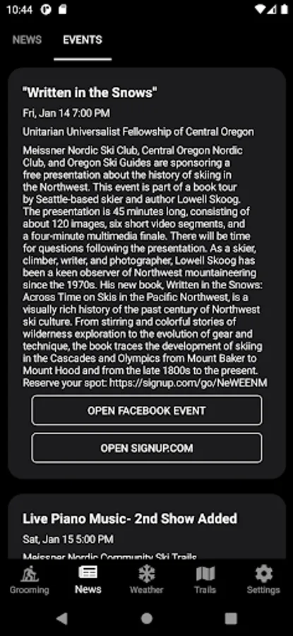 Meissner sno-park grooming & weather reports, announcements, events, trail maps, and more. Everything you need for a fantastic cross-country ski trip.