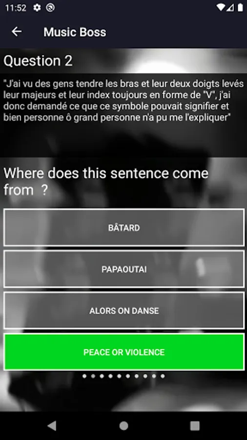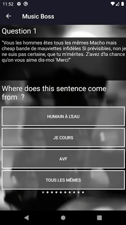 This is the ULTIMATE Test on your musical knowledge about the French music. Play alone or with some poeple to discover the names of the best songs or the quiz mode for the best punchlines. Several categories are available. The biggest hits, the most dancing songs of decades 80's, 90's and since 2000 find the biggest artists: Stromae, Louane, Louise attaque, but also Image, debut de soirée, jeane Mas, Johnny Haliday