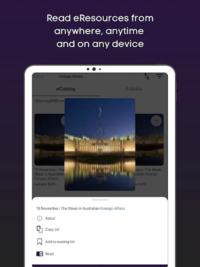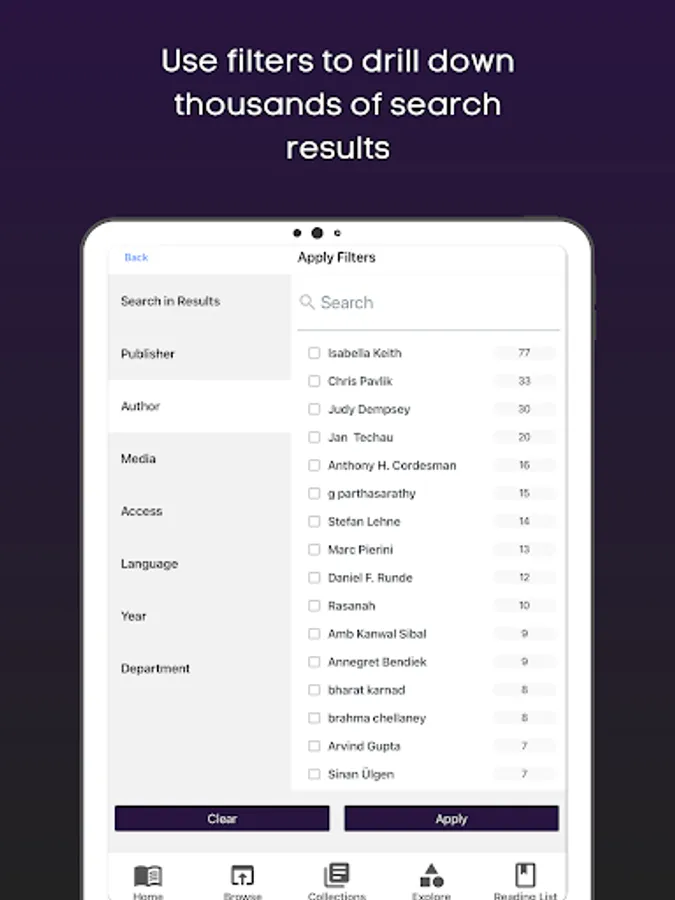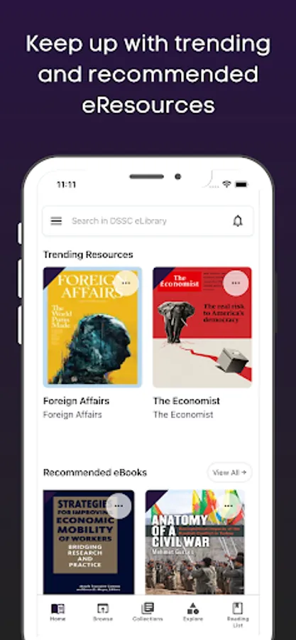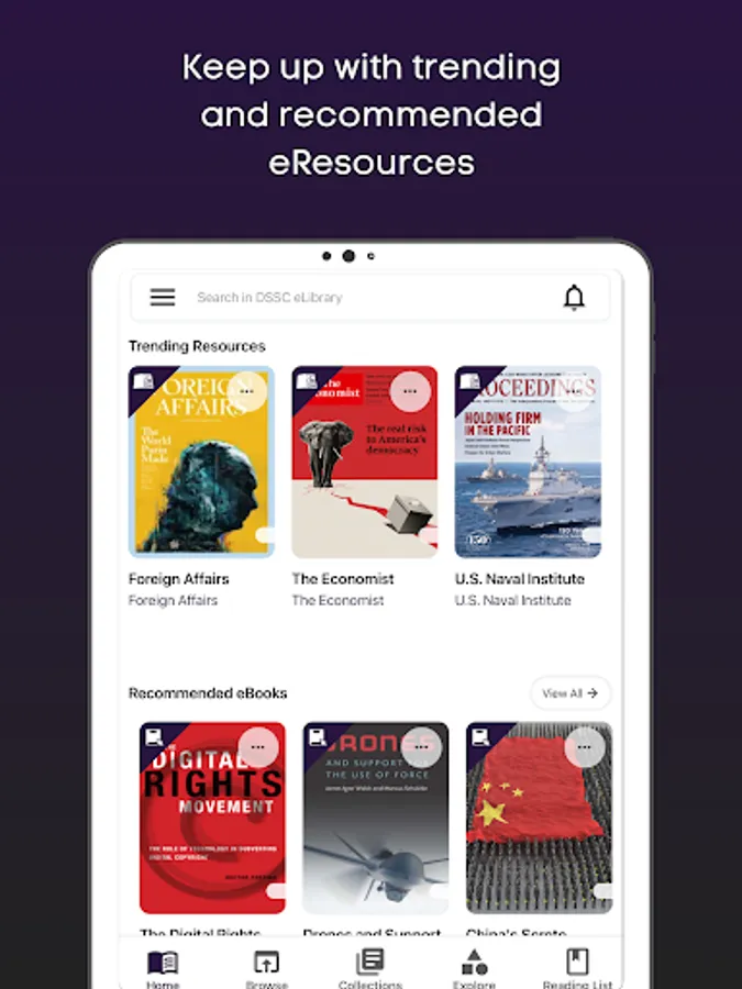 DSSC eLibrary App serves its users with mobile, on-the go access of a massive collection of over 100,000+ eResources and information feeds including: