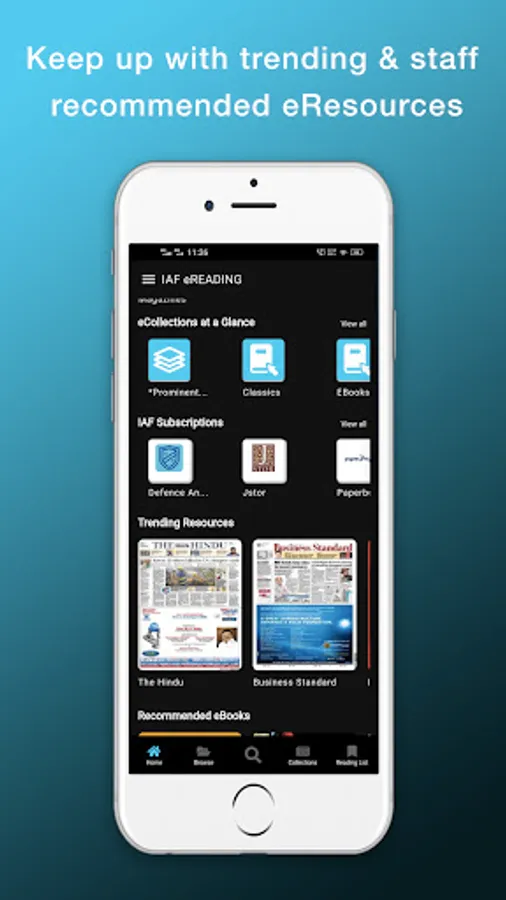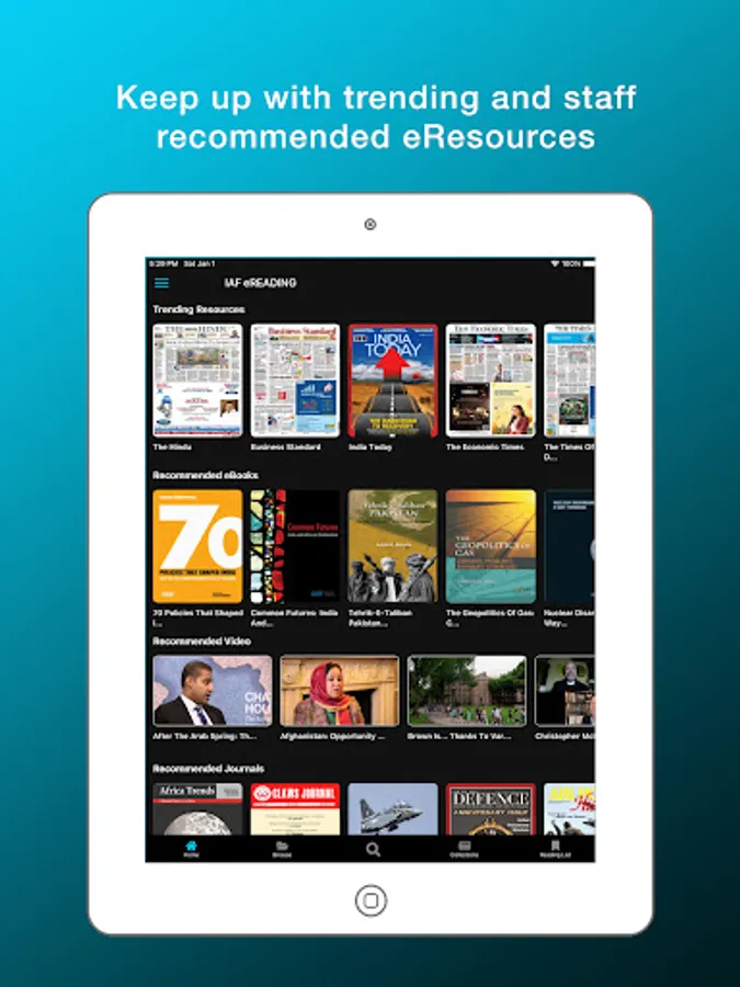 IAFeReading App serves its users with mobile, on-the go access of a massive collection of over 500,000+ eResources and information feeds including: