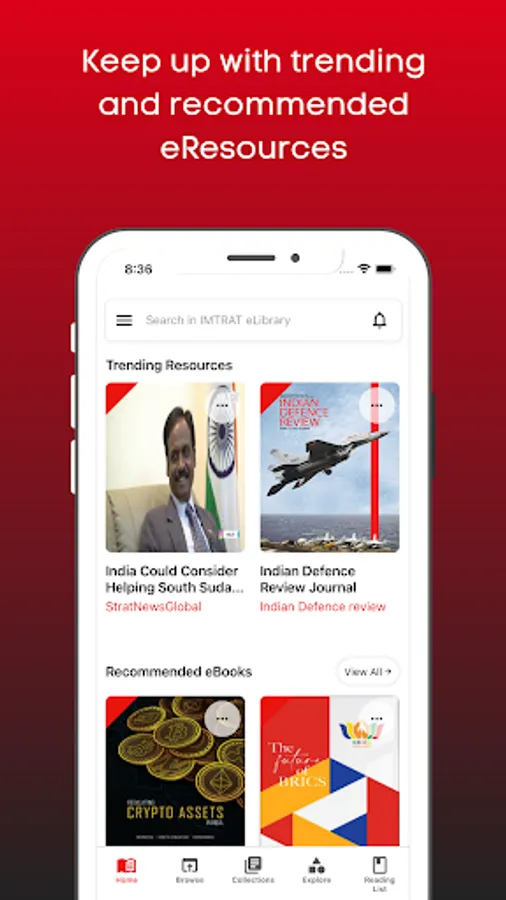 IMTRAT eLibrary App serves its users with mobile, on-the go access of a massive collection of over 100,000+ eResources and information feeds including: