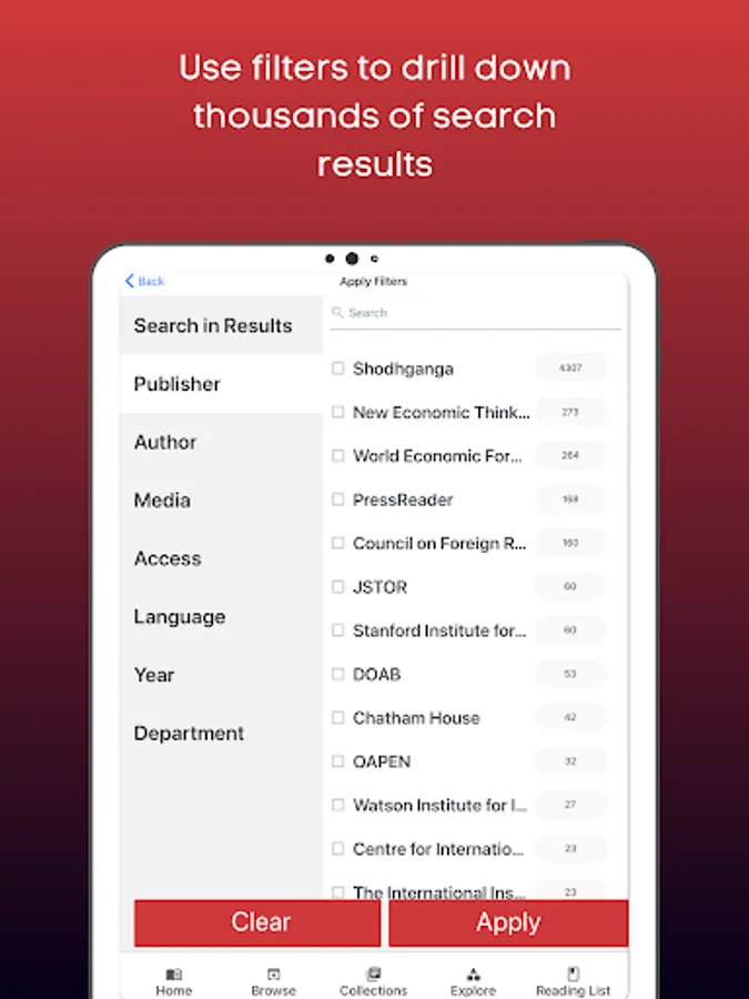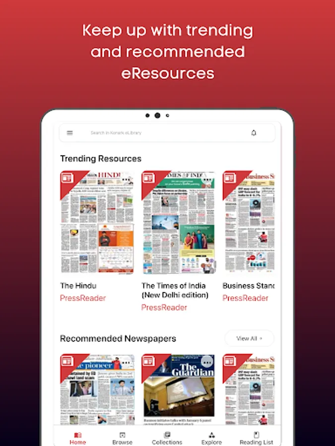 Konark eLibrary App serves its users with mobile, on-the go access of a massive collection of over 100,000+ eResources and information feeds including:
