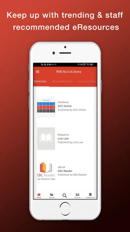 RMLNLU eLibrary App serves its users with mobile, on-the go access of a massive collection of eResources and information feeds including: