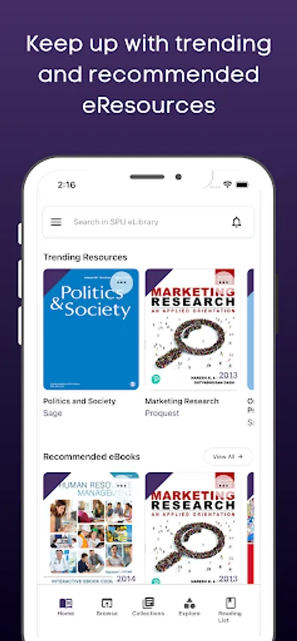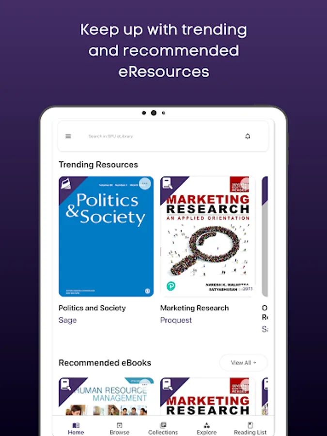 SPU eLibrary App serves its users with mobile, on-the go access of a massive collection of eResources and information feeds including: