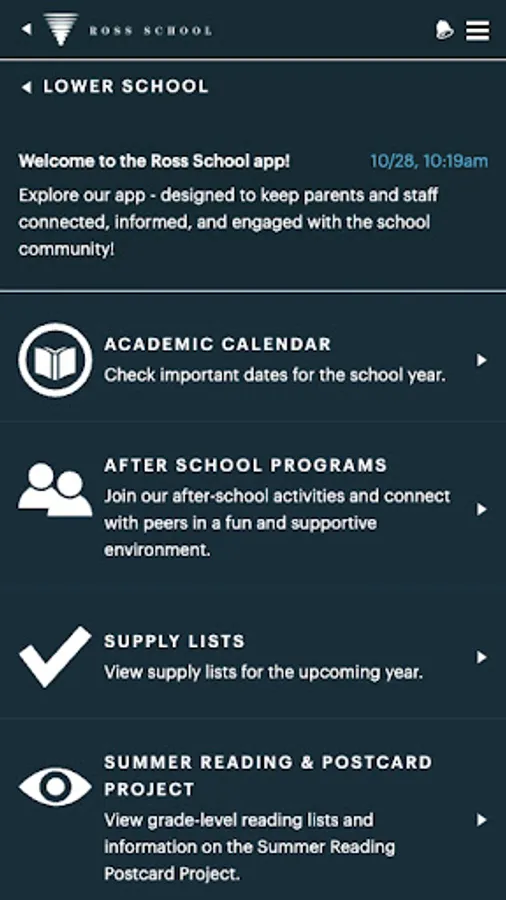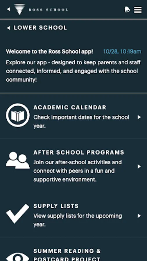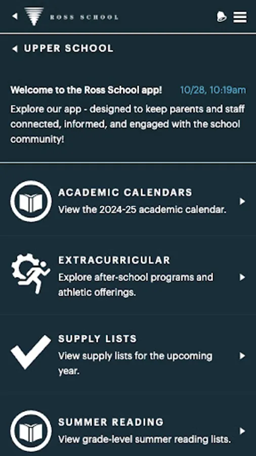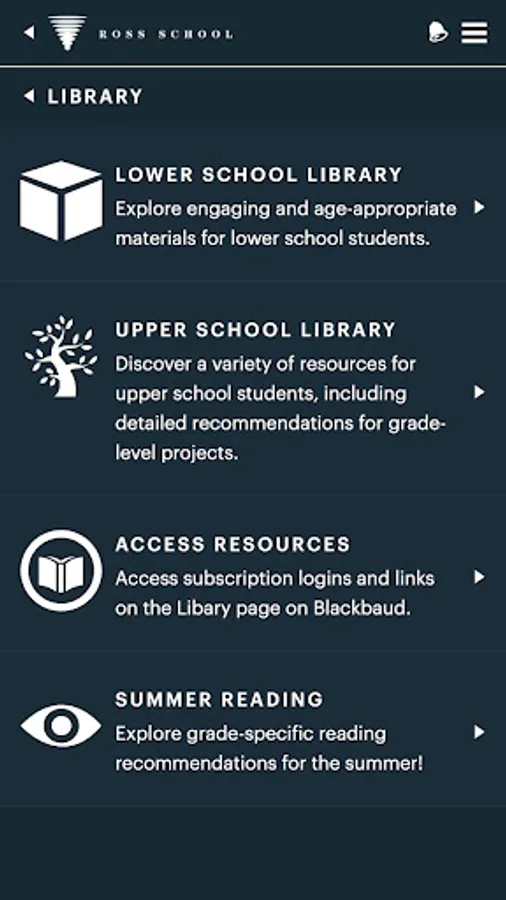 The Ross School App allows access to parent & faculty resources including academics, athletics, our event calendar, the library, and more.