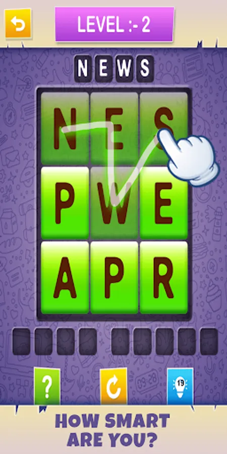 • Swipe letters to find, select and connect words.