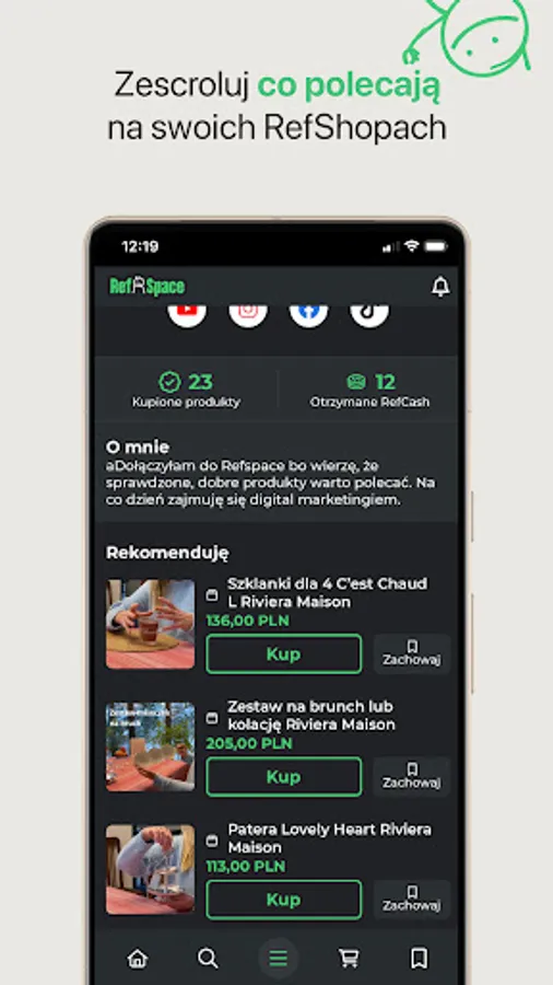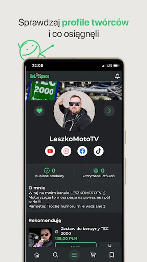 Are you looking for information or entertainment? Visit your favorite creator's channel, profile or account without worrying that he'll want to sell you something at the same time. Do you want or need to go shopping? Hit on RefSpace, where you can be sure that people you trust sell only what they recommend with a clear conscience, because they use it themselves.