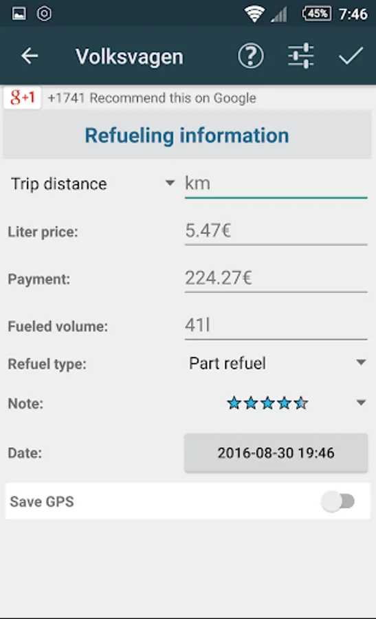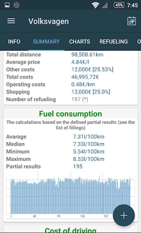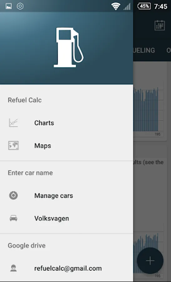 Refuel Calc enables to conduct statistics related to fuel economy.