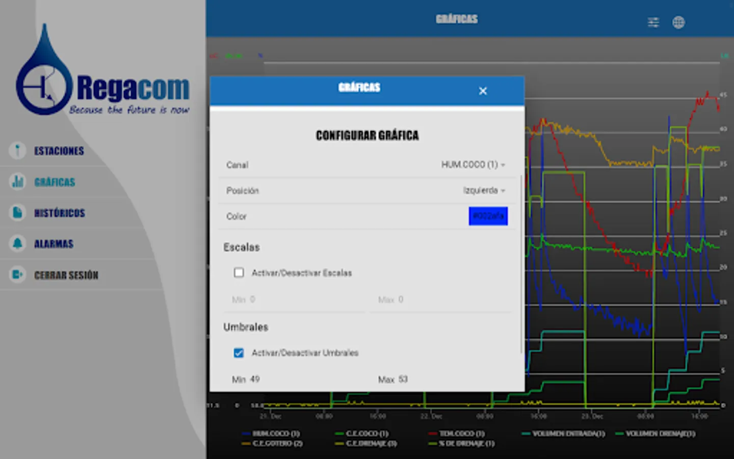 Supervision and control of remote REGACOM stations, visualization of graphs, history and alarms.