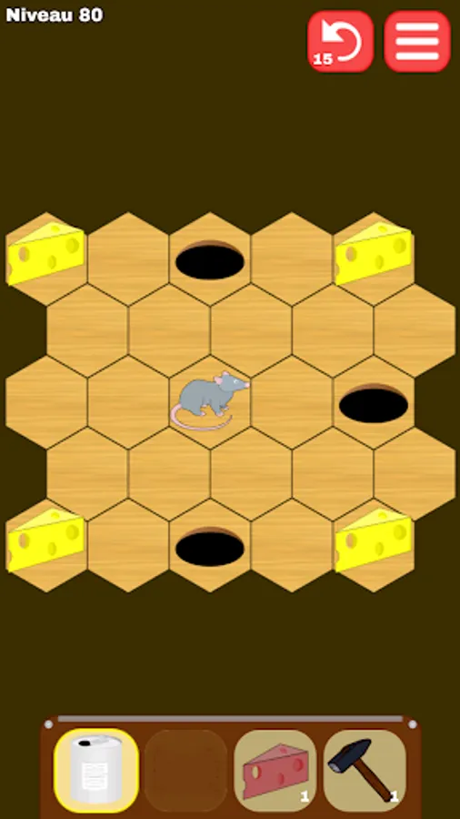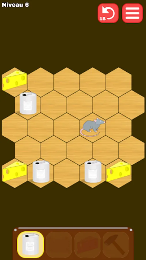 Rat Trap is a small and addictive puzzle game, where your role is to protect your reserve of cheese by carefully positioning blocking elements to prevent the rat from reaching it and eventually trap it.
