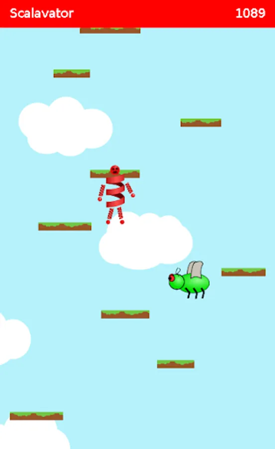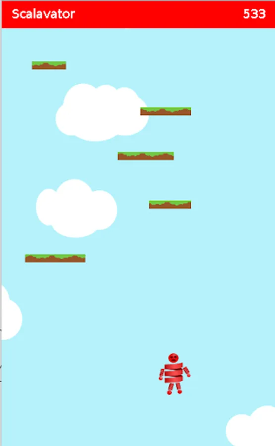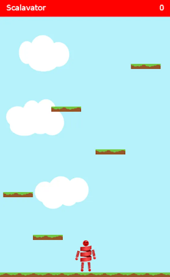 Scalavator is a game where you must jump from platform to platform to try to reach the stars. Help the Scala guy (Segala, or ce-gars-là in original version) to elevate as high as possible by avoiding pernicious bugs along the way. Scalavator is the unofficial Scala game, in homage to the Scala programming language.