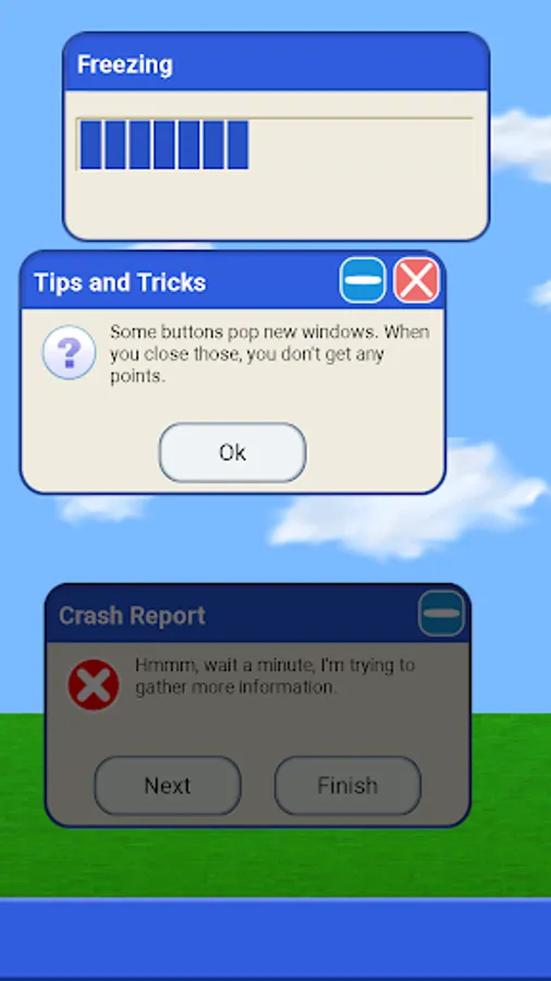 In WinSmash, you are going to close windows, a LOT of windows. You have to keep pace with error messages, pop-ups, and other warnings to prevent your system from crashing abruptly. Random pop-up ads are out to get you, so stay focus to avoid the dreaded blue screen of death.