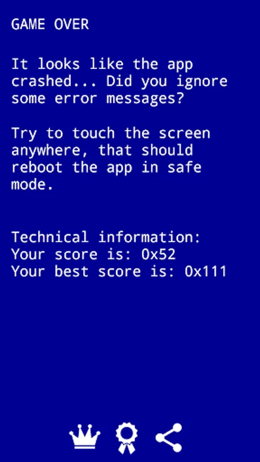 This game emulates computer crashes within the game. What you are seeing is not real, and your phone is totally fine. The game also pops up fake ads, they are not harmful and it is safe to click on them as they won't lead you to any outside website.