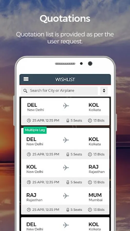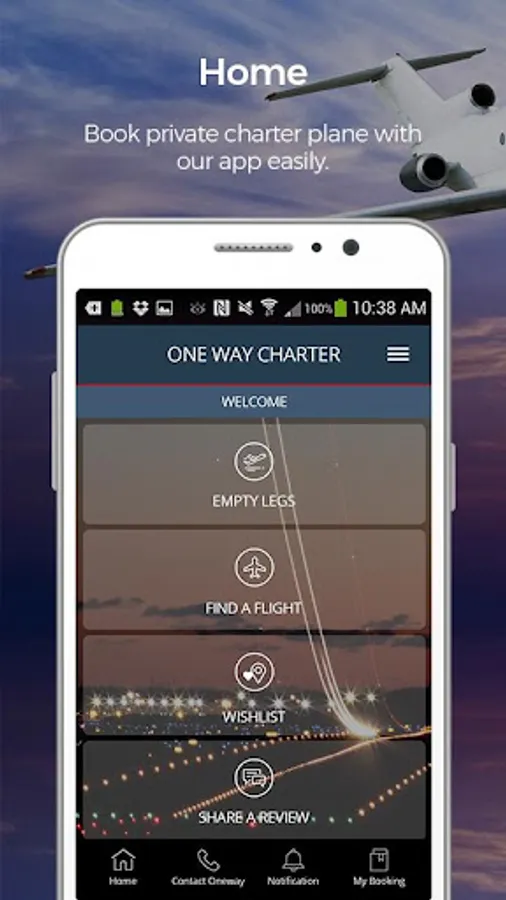 Receive instant push-notifications with the best deals from airports near you. That’s not all; you can also make offers to operators on specific routes and get instant options to choose from.