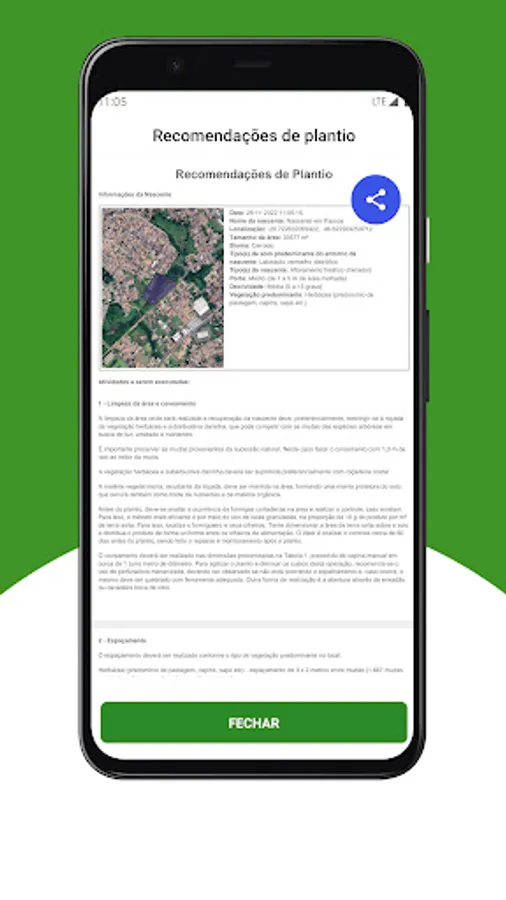 After defining the area and filling in some information, the application will generate a report containing recommendations for the location to be recovered.