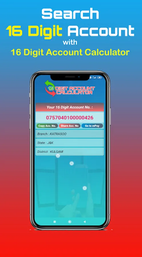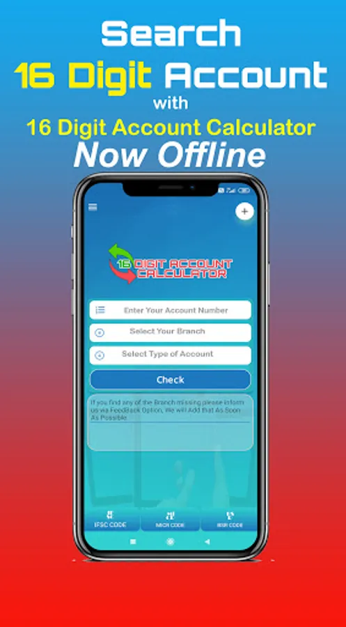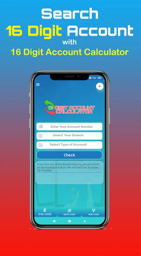 With this App you can Calculate/make 16 Digit Account and IFSC, BSR and MICR Code.