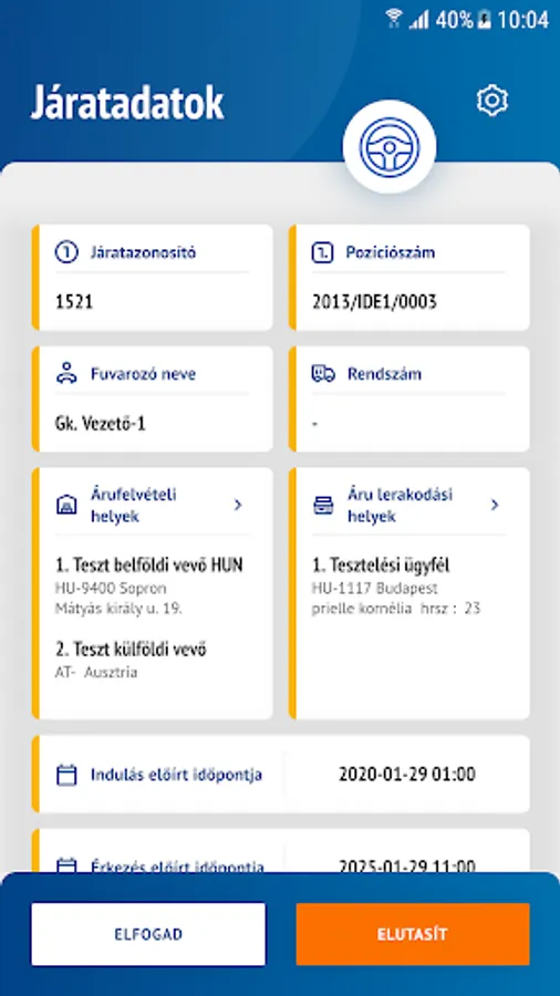 The mobile application of NTG Gondrand Kft.'s Web-SCM application.