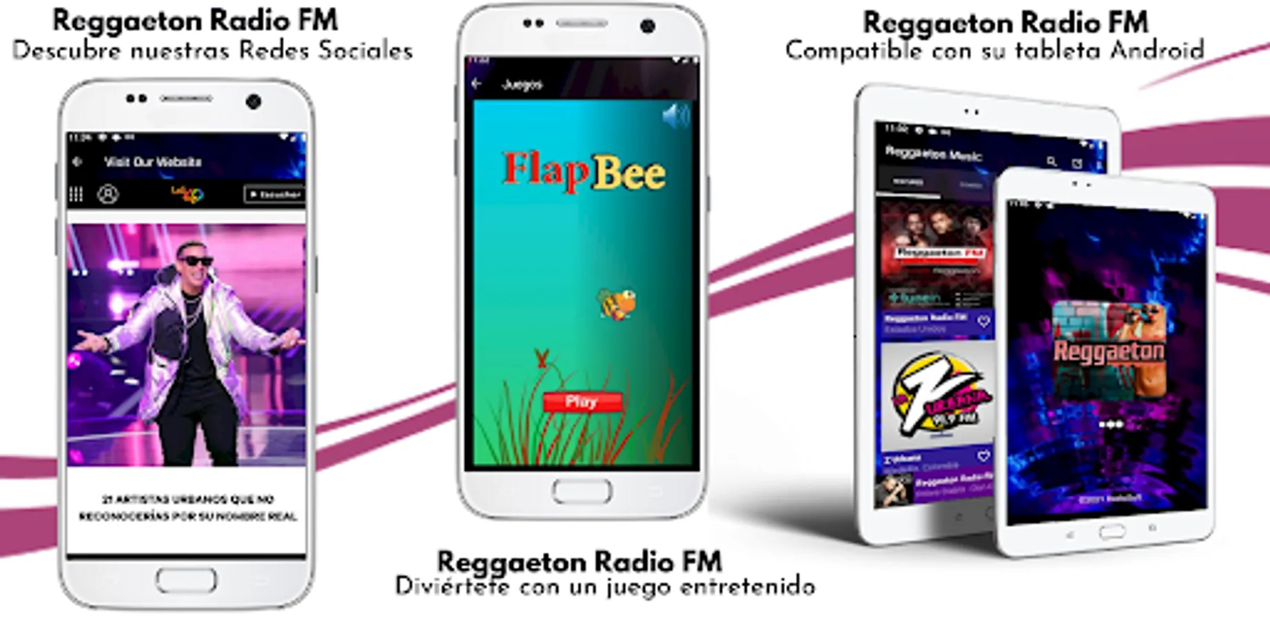 Listen to your favorite Reggaetón music for free in our “Reggaeton Radio FM” on your Android device.