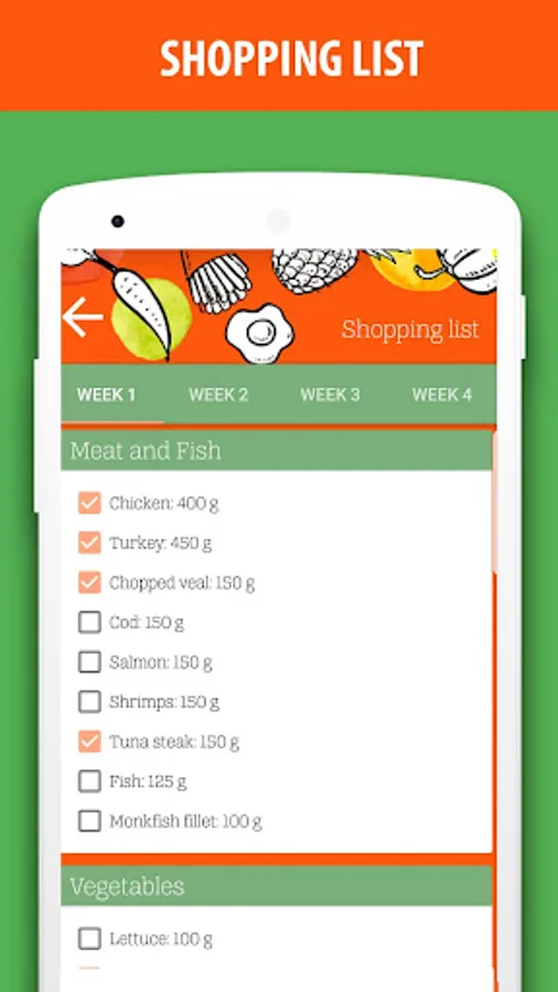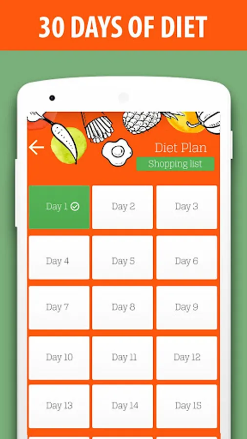 - Complete diet program and low-calorie vegetarian plant for 30 days with daily schedule of the purchase list