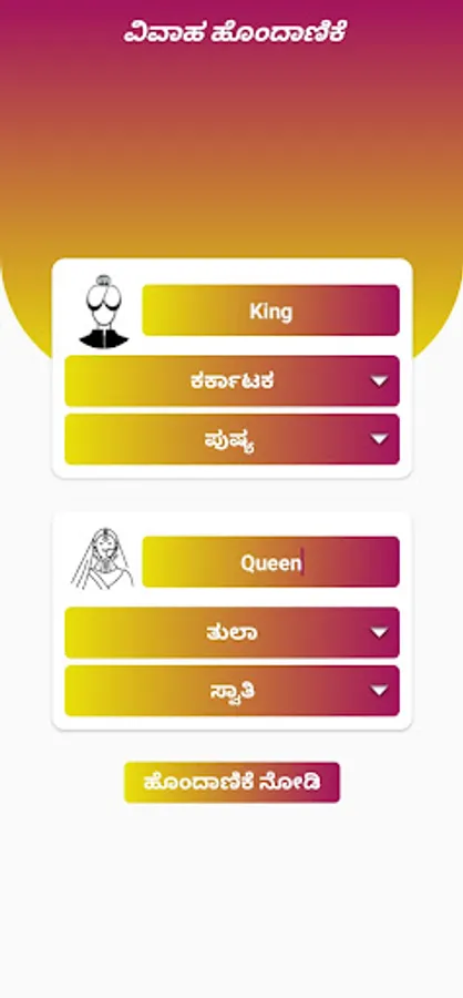 Vivaha Matching app gives marriage match information based on Kannada Astrology