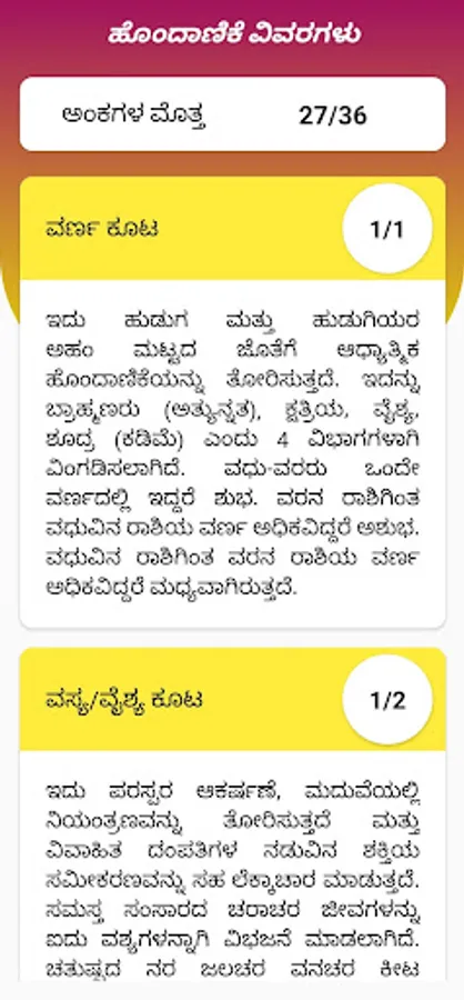 This Vivaha matching in Kannada app contains 8 matching method followed by kannada astrology are