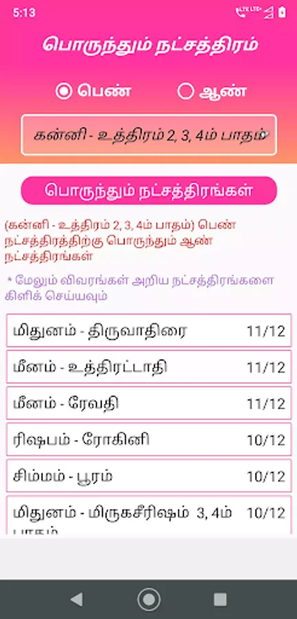Star & rasi porutham app helps to find your matching partner for better marriage life. Easy to find the marriage matching within a minute.