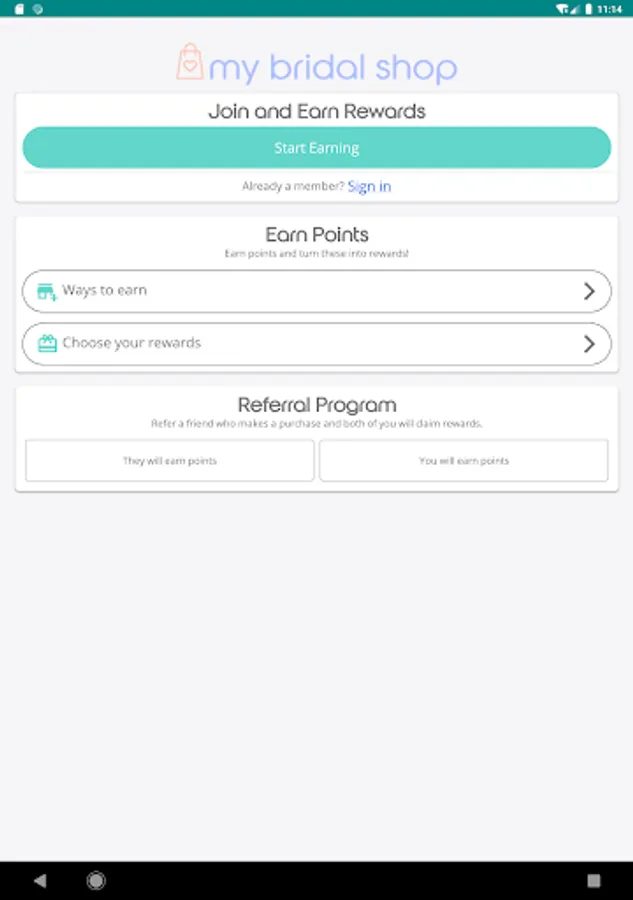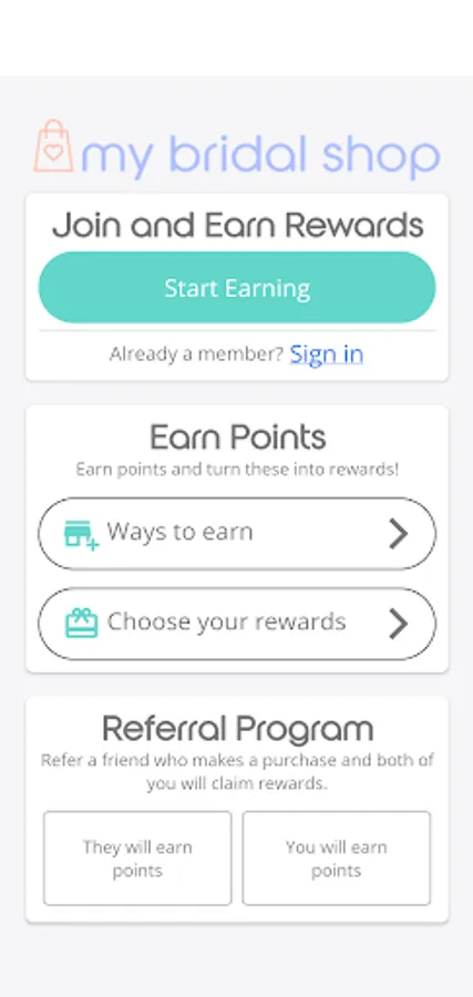 Welcome to My Bridal Shop! With our app, you can easily exchange your purchase points for exciting rewards such as cash, discounts, or store credit.