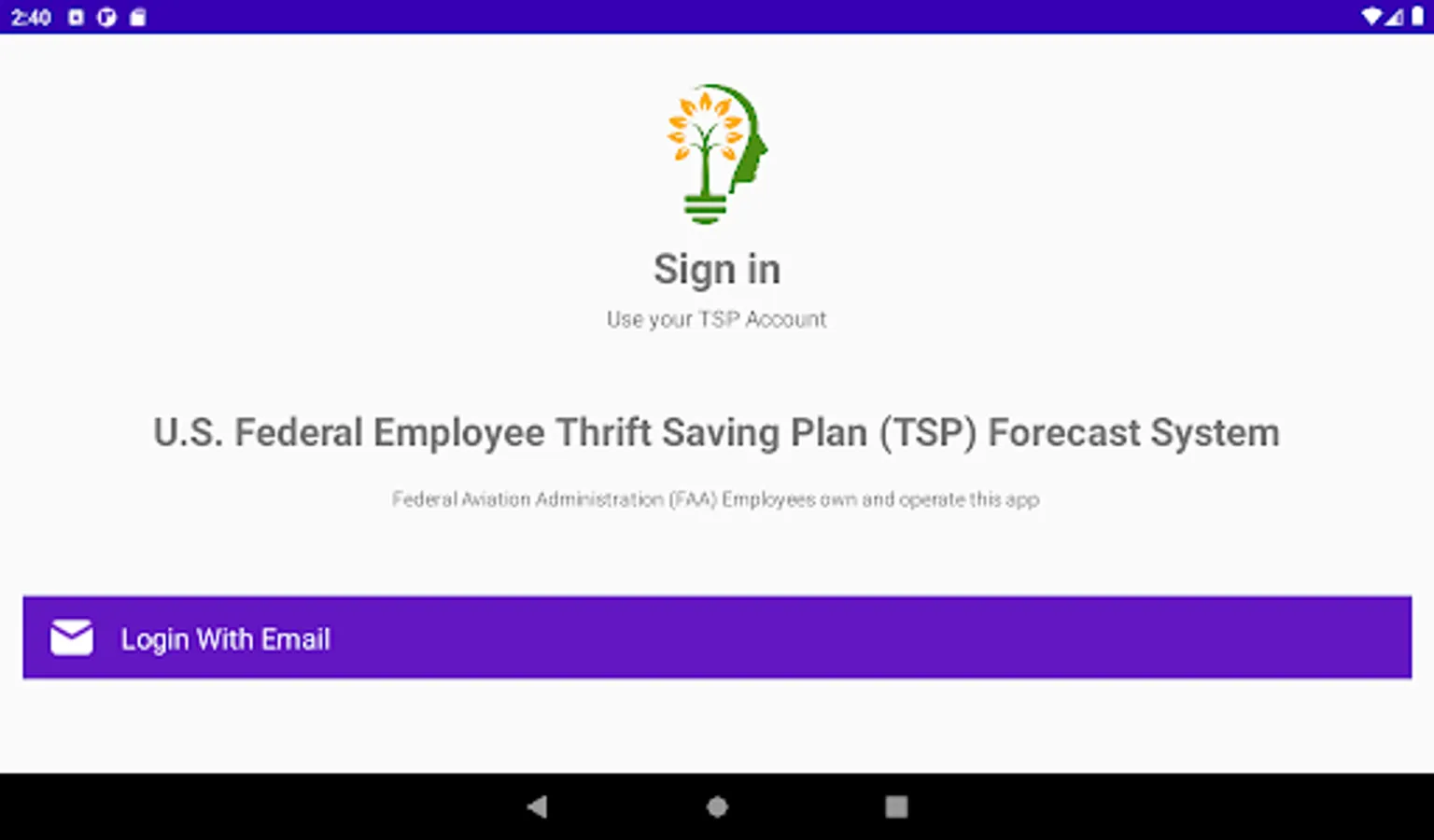 Federal Aviation Administration (FAA) Employees own and operate this TSP Forecast Android mobile app. Our goal is adding 1% more yearly to your TSP plan. As FAA employees or individuals, we do not profit from our efforts but do wish to recover basic expenses. After 90 days risk free trial, this service costs $2 per month for the first 3 years and is reduced to $1 per month after that. Our estimated expenses are $6000 per year (for hosting and licenses). Any extra money is returned to our users.
