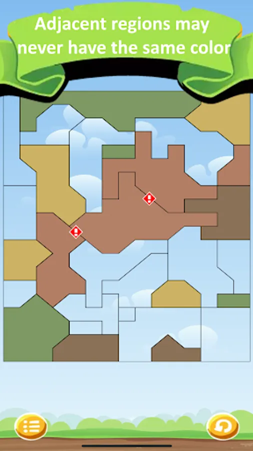 You are given a map consisting of a number of regions. Your task is to color each region with one of four colors, in such a way that no two regions sharing a boundary have the same color. You are provided with some regions already colored, sufficient to make the remainder of the solution unique.