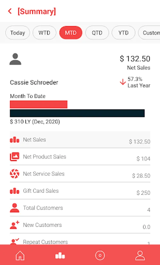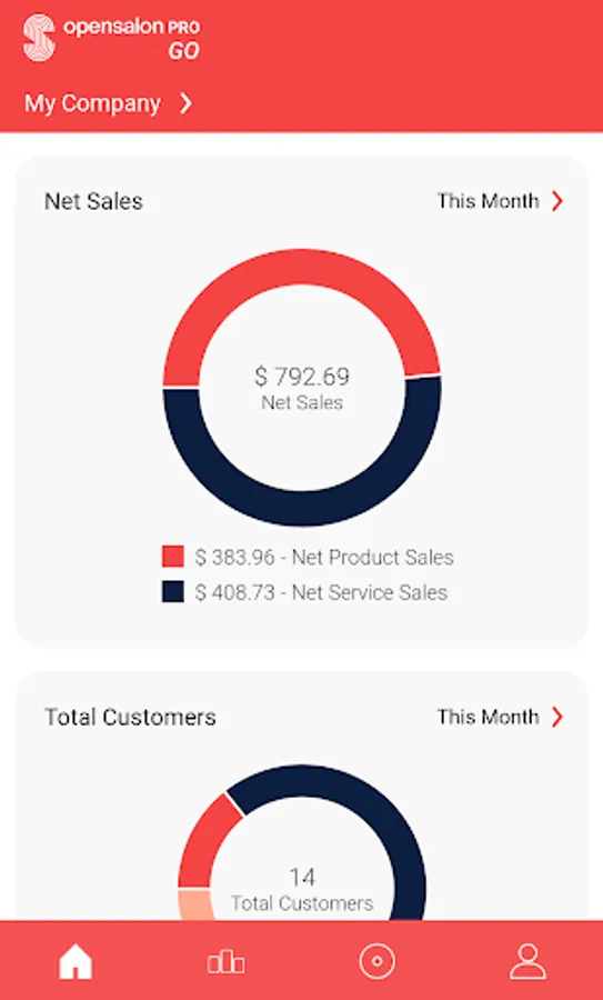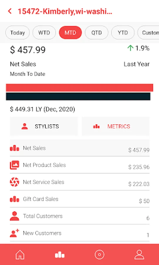 Track key performance metrics for salons in real-time. Set and monitor goals progress across all salons and stylists. Beautiful sales dashboard to view salon's sales and employee performance.