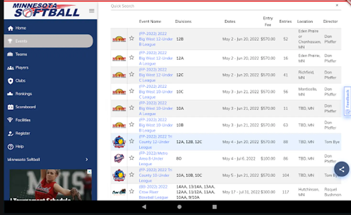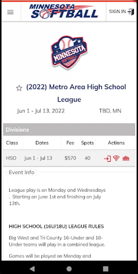 Minnesota Softball is the statewide governing body of amateur softball in Minnesota and an affiliate of USA Softball. Since 1925, Minnesota Softball (formerly known as Minnesota State Diamond Ball Association and Minnesota Amateur Softball Association) has been providing volunteer services to develop and promote youth and adult softball in Minnesota.