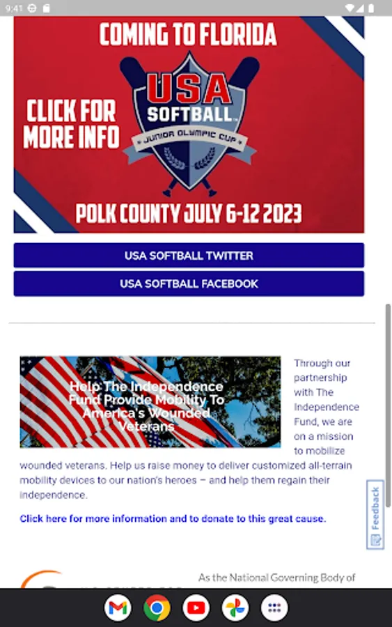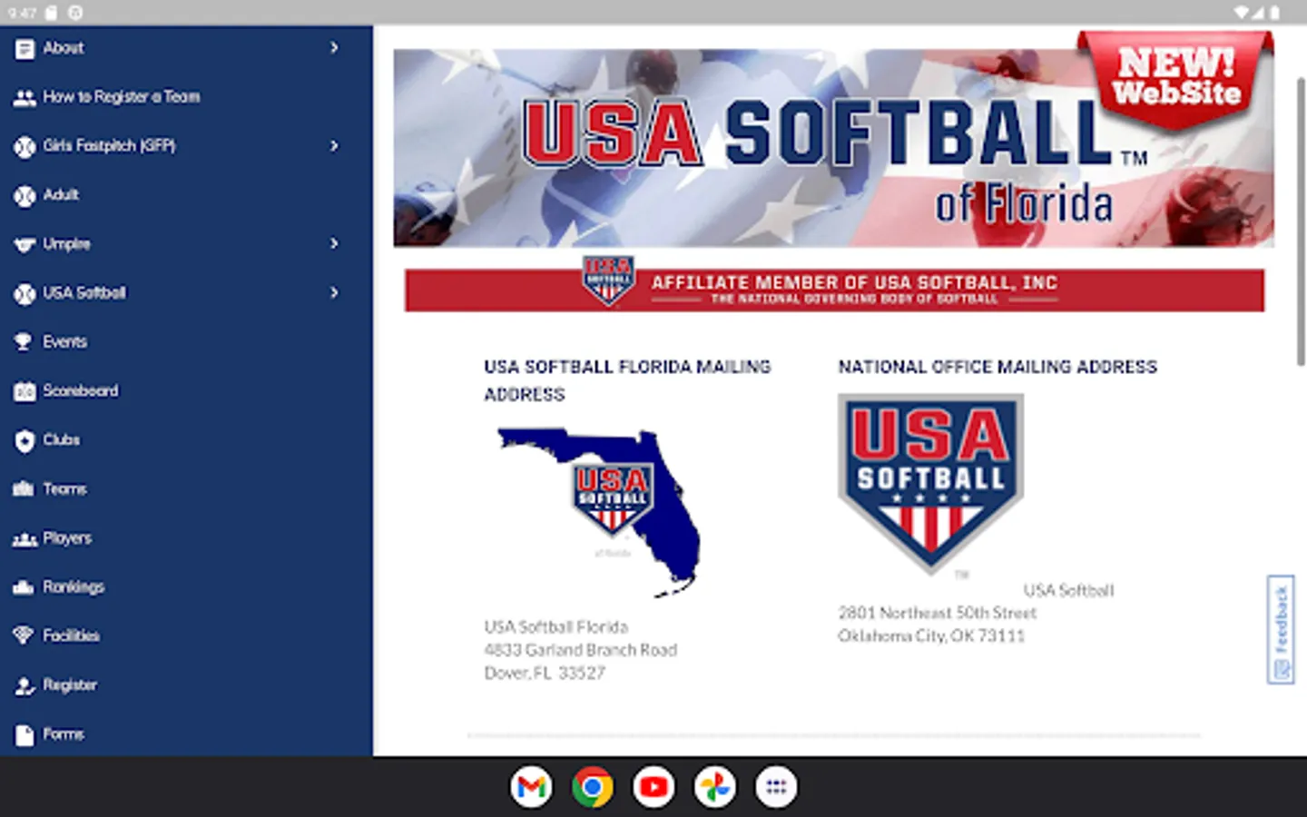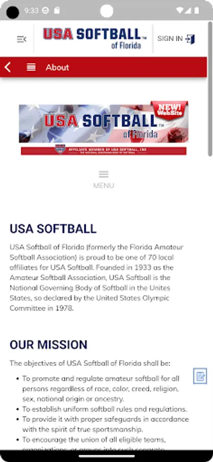 USA Softball of Florida (formerly the Florida Amateur Softball Association) is proud to be one of 70 local affiliates for USA Softball. Founded in 1933 as the Amateur Softball Association, USA Softball is the National Governing Body of Softball in the Unites States, so declared by the United States Olympic Committee in 1978.
