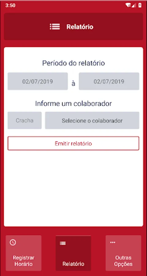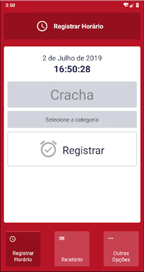 The application provides a platform that allows you to register the current time with timezone GMT -03: 00, and requests the user's location at the time of registration as a way of verifying and identifying the place where the registration was made.