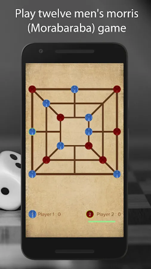 ✓ 2 games (Nine Men's Morris and 12 Men's Morris) in single-player mode with easy medium and hard mode.