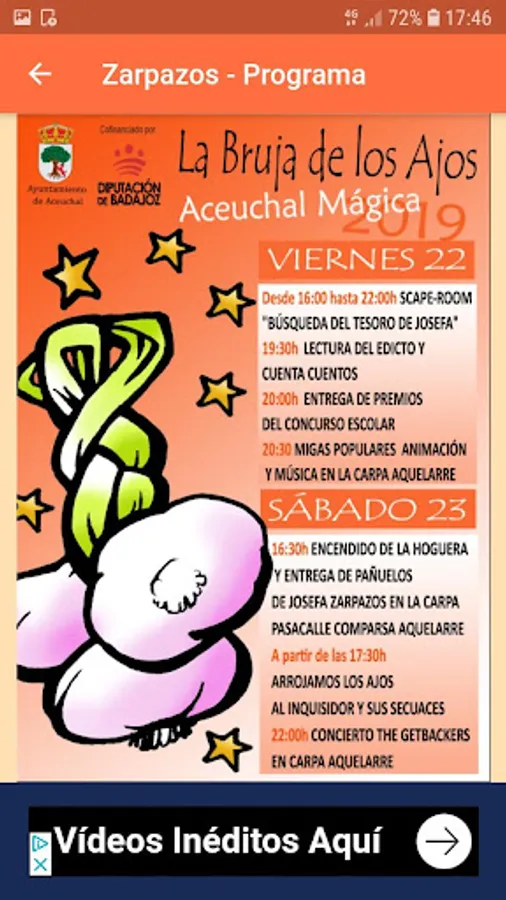 It also contains the program of the event of the witch of the garlic of Aceuchal and the information of the characters.